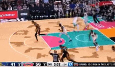 所谓的从队友手里抢篮板,应该是指勇士VS马刺次节,波杰姆斯基高高跃起在巴特勒头上摘板,然后再传给后者这个回合。